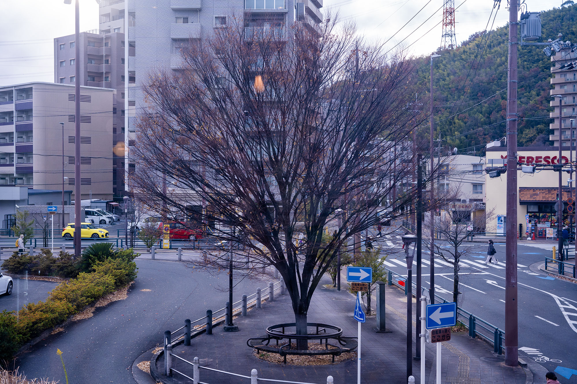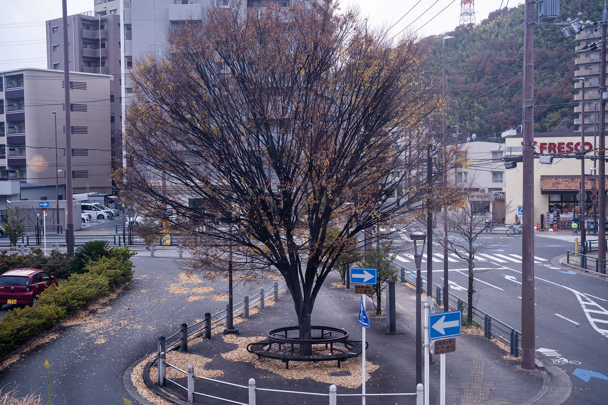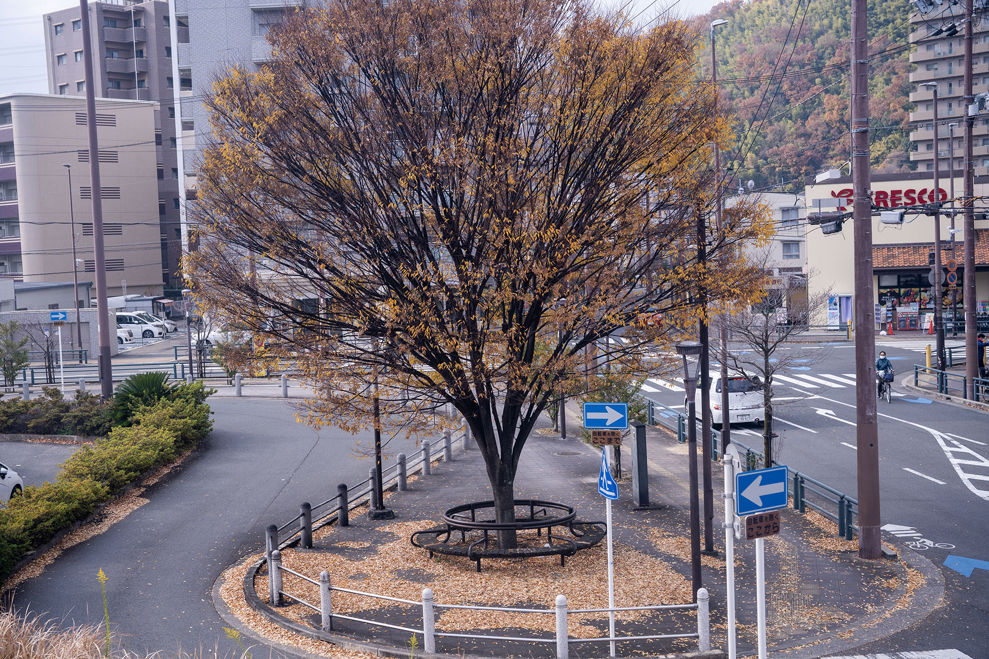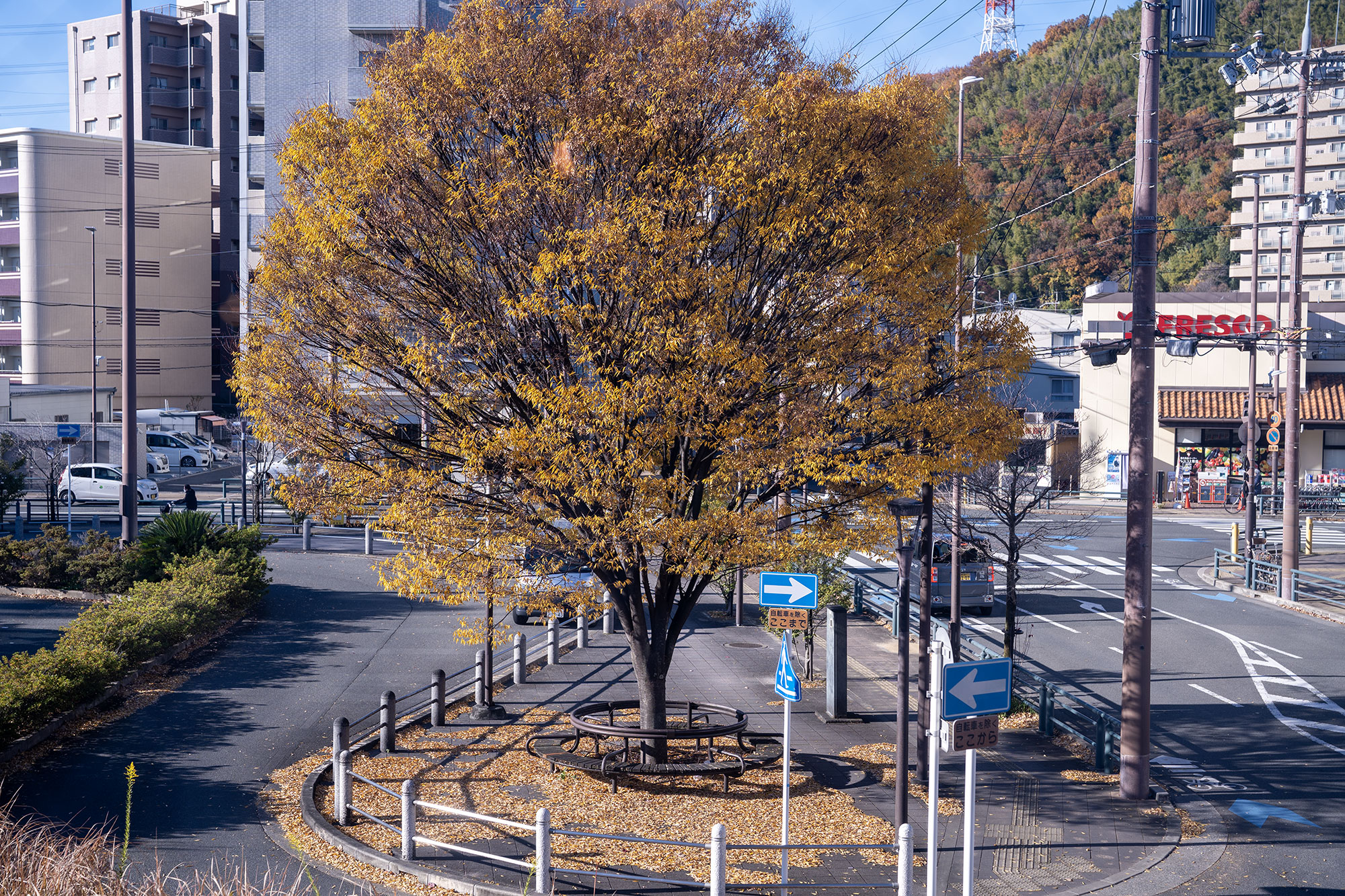 お店の前の木も